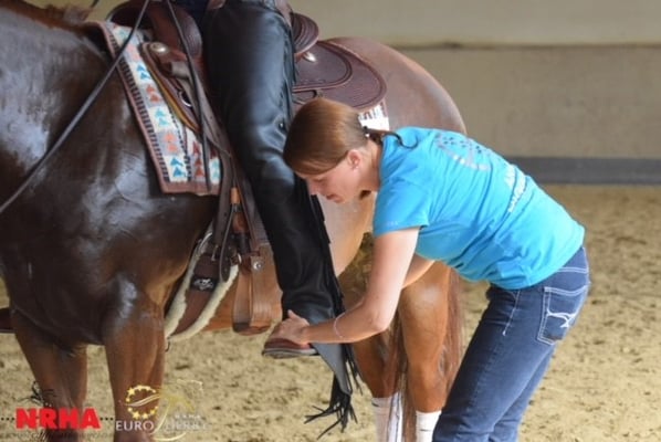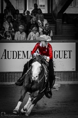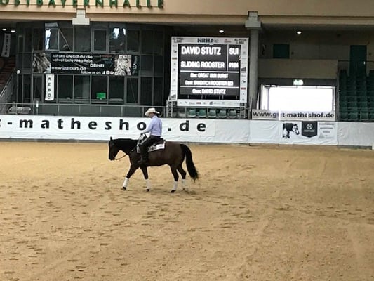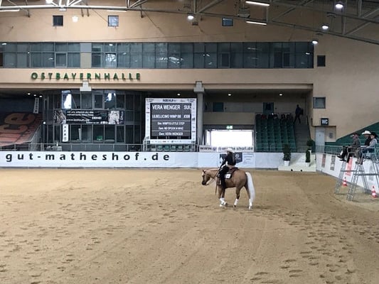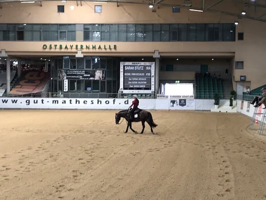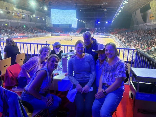 Die Schweizerinnen wurden herzlich willkommen geheissen und es herrschte eine sehr freundschaftliche Stimmung. Um die Pferde an die Showarena sowie den Messetrouble zu gewöhnen, konnten sie bereits am Samstagmorgen im Westernring reiten Die perfekte Vorbereitung für die Superhorse-Prüfung welche dann am Abend in derselben Arena stattfinden würde.