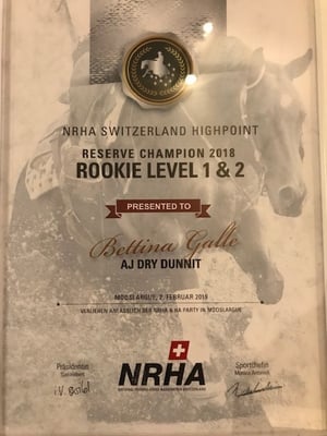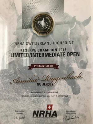 Annika reist mit 2 Pferden nach Mooslargue an die 3 nation show und kommt mit dem Champion und dem Reserve Champion Titel in der Open Trophy zurück! Zusammen mit dem 2. Platz von Ursula Niklaus in der Green Reiner Klasse ein souveräner Start in die Saison 2018.