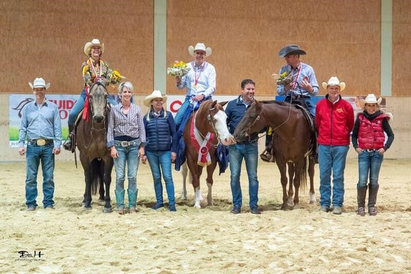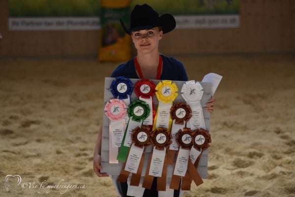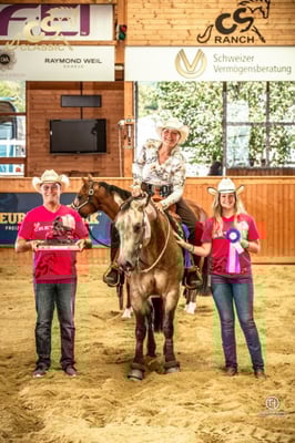 Und dies gelang Annika Riggenbach mit AJ Dry Dunnit einmal mehr am besten. Mit einem nahezu perfekten Ritt gewann sie mit dem Score von 73 diesen Western Show Cup und konnte den gesponsorten Sattel mit nach Hause nehmen. Viviane Nägeli und Simone Reiss zeigten ebenfalls schöne Ritte und konnten auf die Ränge 8 und 5 reiten.